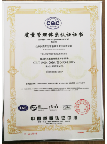 在企業管理方面,公司產品通過了ISO9001質量管理體系認證